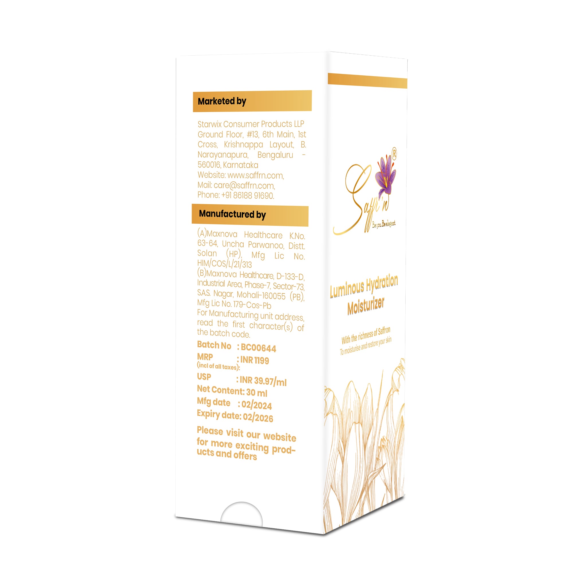 Saffr’n Luminous Hydration Moisturizer is a premium skincare product designed to provide deep hydration and nourishment, leaving your skin soft, smooth, and radiant. This luxurious cream combines the finest natural extracts with advanced scientific ingredients to ensure optimal skin health and beauty.