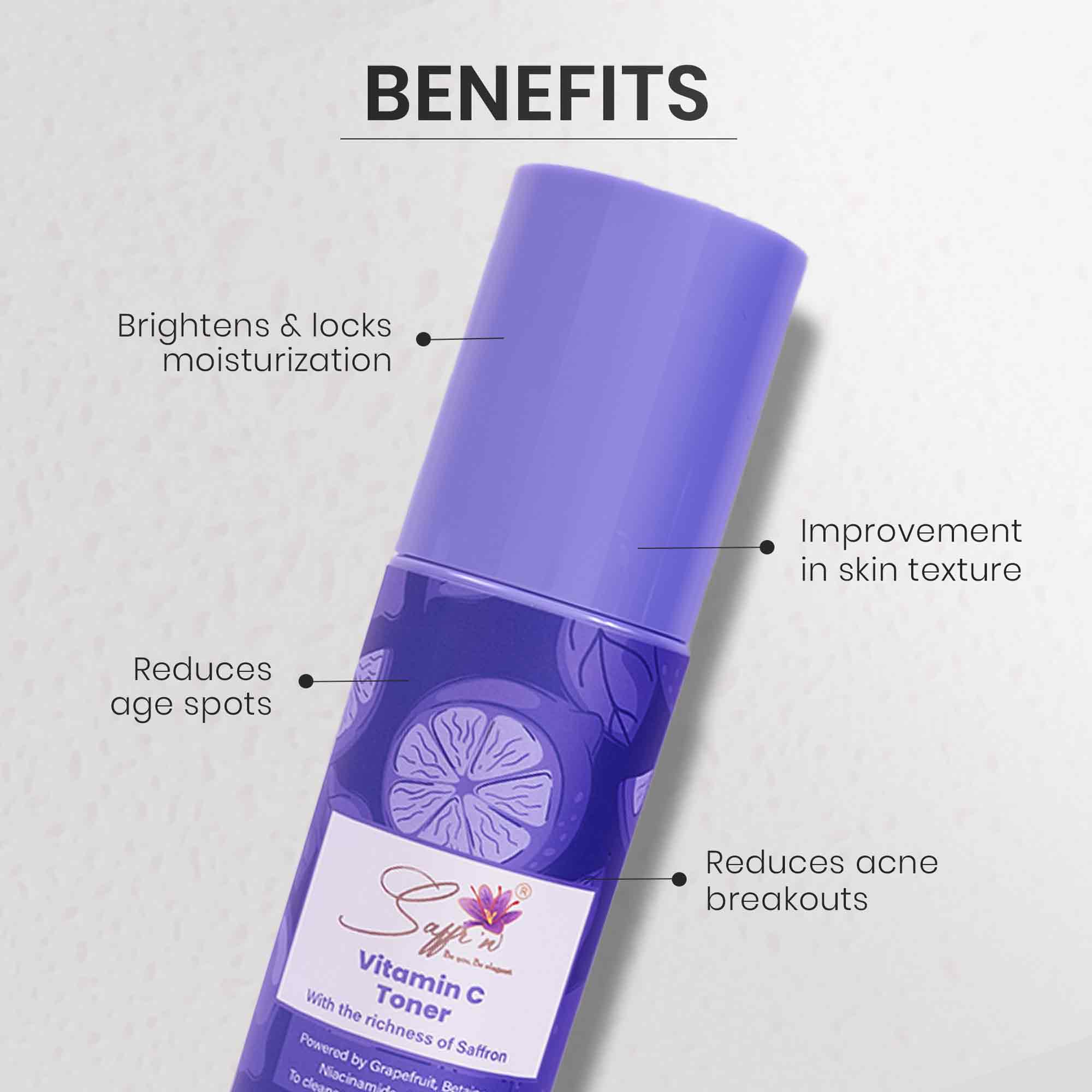 Rejuvenate your skin with our Saffr'n Luminous Vitamin C Toner, a perfect blend of natural extracts and nourishing ingredients. Free from harsh chemicals, this toner leaves your skin refreshed, radiant, and glowing. Perfect for all skin types, it’s your daily dose of natural brightness!